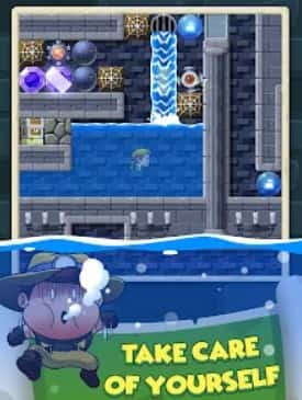 There are many features in Diamond Quest Don’t Rush Mod APK. For example, it has excellent high-quality graphics and soundtracks. This game has many helping tools, like a hammer to break the wall and a hook to drag. Hammer can be used to freeze things.